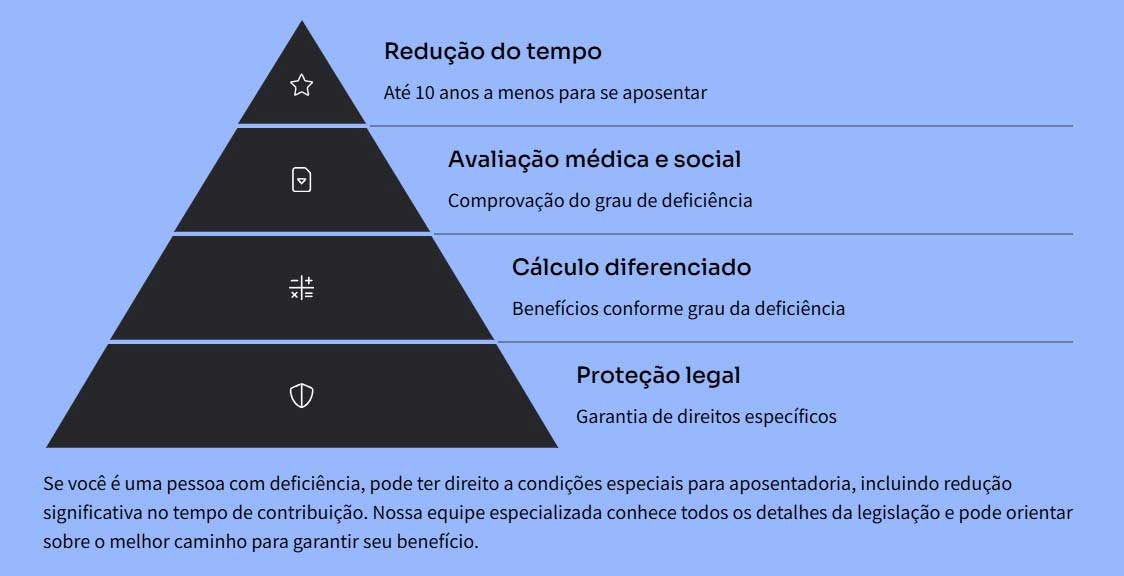 Se você é uma pessoa com deficiência, pode ter direito a condições especiais para aposentadoria, incluindo redução significativa no tempo de contribuição.